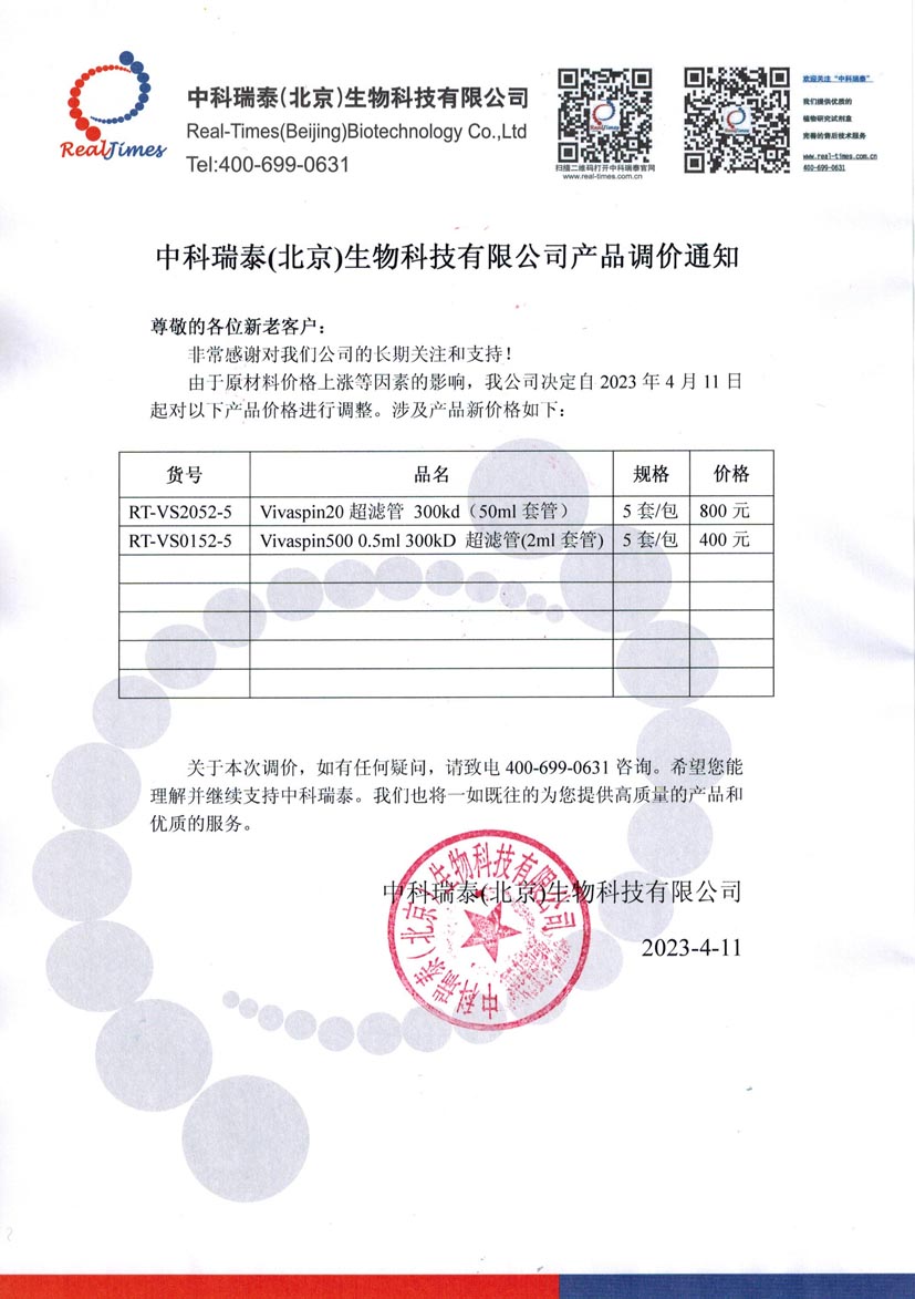 產品調價通知-Vivaspin超濾管產品