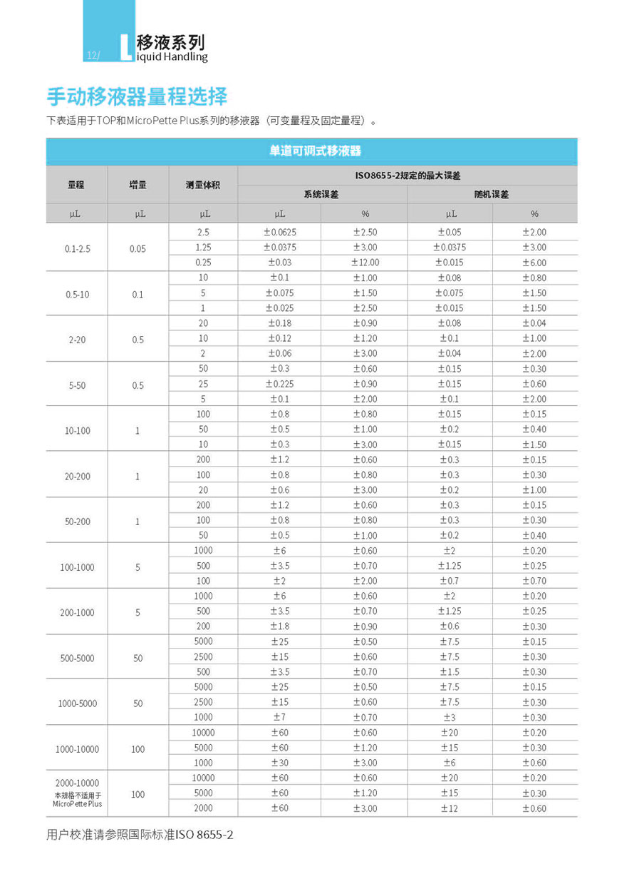 - 精確的分液,每支移液器都遵照EN/ISO8655標準進行校準