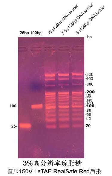 PCR級高分辨率瓊脂糖(High Resolution Agarose)對PCR 產物,小片段DNA 具有很高的分辨率,可以和聚丙烯酰胺相媲美,適宜分離 20 bp - 800 bp DNA片段。