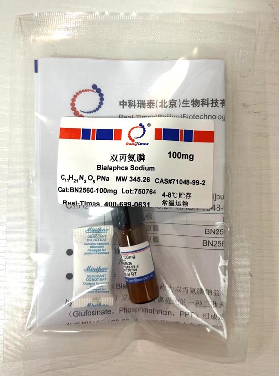 雙丙氨膦(Bialaphos)也稱為雙丙氨膦鈉鹽(Bialaphos Na)是從土壤吸水鏈霉菌(Streptomyces hygroscopicus)發酵液中分離提純的一種三肽天然產物,由兩個丙氨酸殘基和谷氨酸類似物草銨膦(Glufosinate,Phosphinothricin,PPT)組成是一種非選擇性除草劑,對哺乳動物低毒,在土壤中半衰期較短(20-30天)。雙丙氨膦本身無除草活性,在植物體內降解成具有除草活性的草銨膦和丙氨酸。