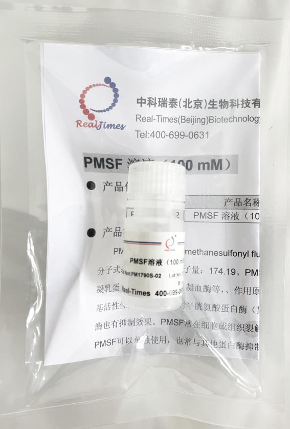 本產(chǎn)品為PMSF即用型溶液,可以方便直接加入到蛋白提取緩沖液中。在蛋白提取中,PMSF推薦使用終濃度為0.1-1 mM,由于PMSF在水系緩沖液中極其不穩(wěn)定,必須現(xiàn)用現(xiàn)加。
