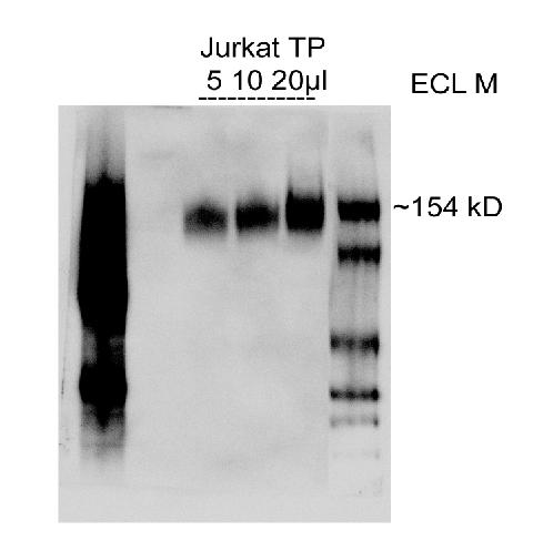 本抗體如果用于常規(guī)的Western檢測,稀釋5000倍,一次使用5 ml稀釋的抗體,至少可以檢測20次。
