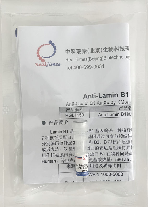 Lamin B1檢測:Anti-Lamin B1抗體(兔單抗)(貨號:RGL1150)1:3000 RT 1h,
