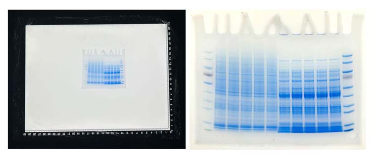 1. 用于蛋白PAGE凝膠電泳后,考馬斯亮藍(lán)染色后條帶觀察;用于核酸PAGE電泳后銀染條帶觀察。