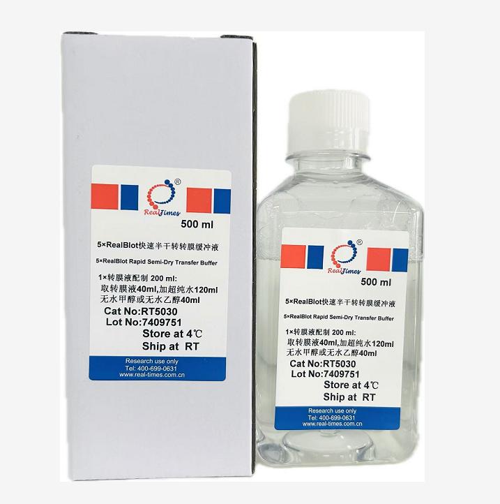 5×RealBlot快速半干轉轉膜緩沖液使用獨特配方,使用半干轉法(Semi-dry blot)方法,能在10-20分鐘內高效快速地將蛋白轉移到印跡膜(PVDF膜或NC膜)上。