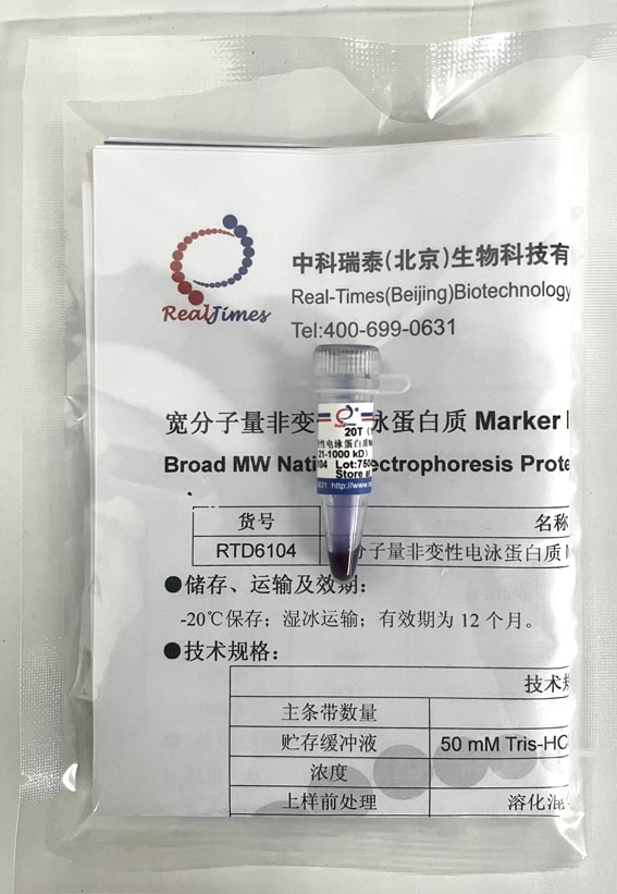 2. 非變性蛋白電泳Marker由于要保持蛋白的天然結構,都沒有偶聯染料,在電泳時基本都看不到條帶;但是RTD6104中的440