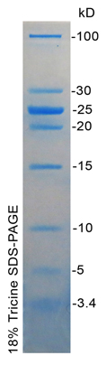 本產品包含5種多肽和3種低分子量蛋白質組成,分子量范圍為3.4kD-100kD。可以用來判斷 SDS-PAGE上多肽和小蛋白的分子量。