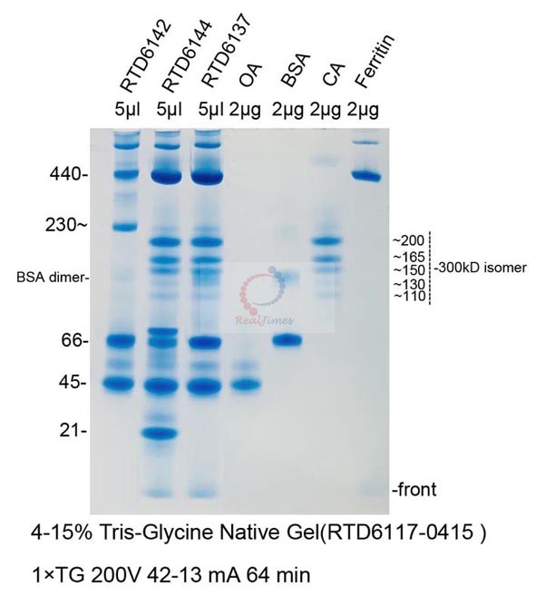 Marker: RTD6137非變性電泳蛋白質Marker(45-880 kD)