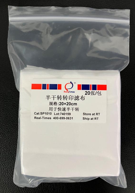 本轉(zhuǎn)印濾布可以耐受用于蛋白印跡中的甲醇、乙醇及其它有機(jī)試劑。濾布展開大小為20×20 cm,無(wú)需自行裁切,根據(jù)需要可以自由折疊為使用的厚度,使用方便。