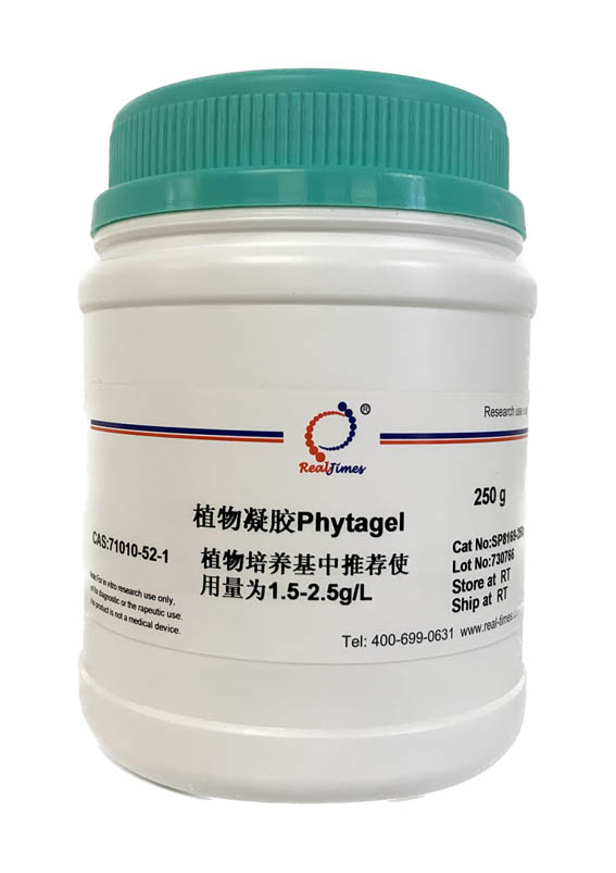 Phytagel又名Gellan gum,Gelrite。是一種瓊脂的替代物,是細菌(假單孢菌Pseudomonas elodea)經過發酵生產的,含有葡萄糖醛酸、鼠李糖和葡萄糖等物質,具有無色、透亮和高韌性的特點,是配制植物組織培養基和微生物培養基的主要成分。由于其克服了傳統瓊脂在植物組織培養中的固有缺陷為植物學研究帶來了一場新的革命,已經成為了國際公認的植物組培首選產品。