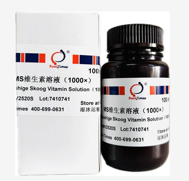 MS維生素溶液是培養基組份中維生素的單獨混合物,濃度為1000×,該溶液已經抽濾除菌,可以直接添加到培養基中,建議1升培養基中加入1 ml MS維生素溶液。