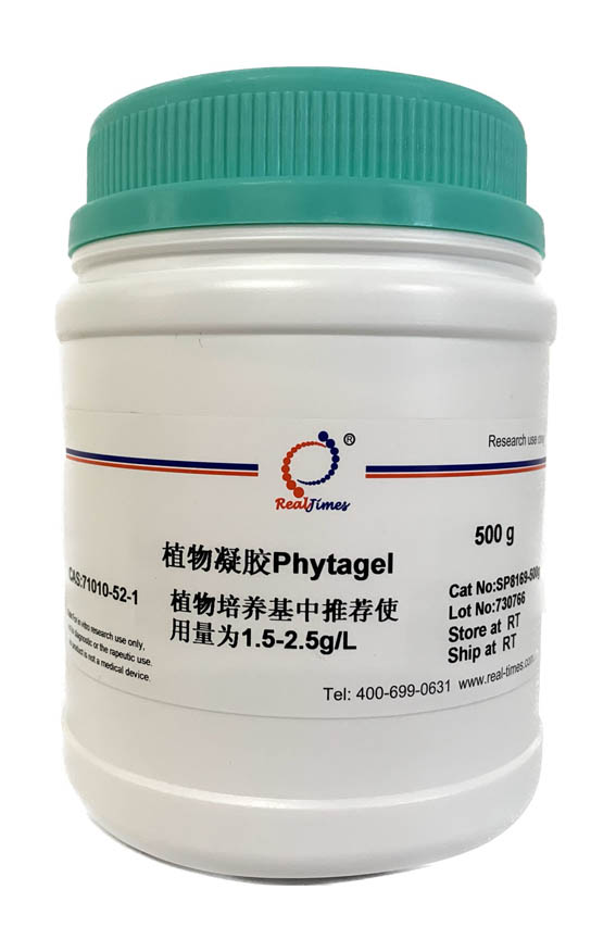 Phytagel又名Gellan gum,Gelrite。是一種瓊脂的替代物,是細菌(假單孢菌Pseudomonas elodea)經過發酵生產的,含有葡萄糖醛酸、鼠李糖和葡萄糖等物質,具有無色、透亮和高韌性的特點,是配制植物組織培養基和微生物培養基的主要成分。由于其克服了傳統瓊脂在植物組織培養中的固有缺陷為植物學研究帶來了一場新的革命,已經成為了國際公認的植物組培首選產品。